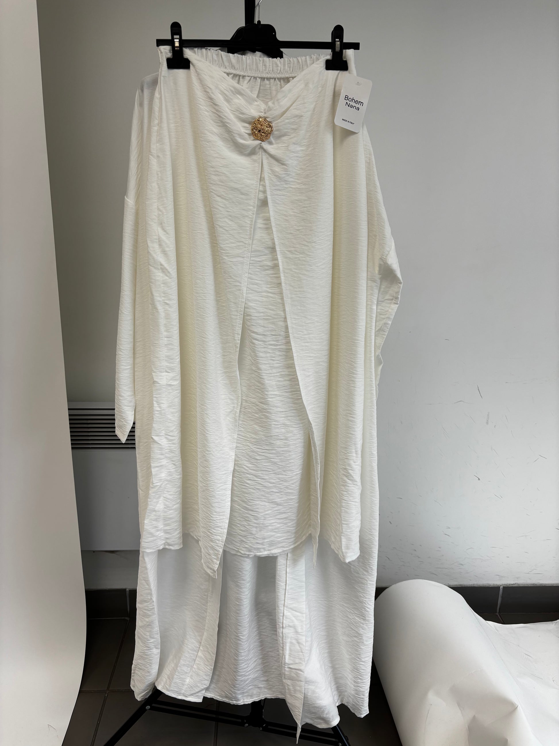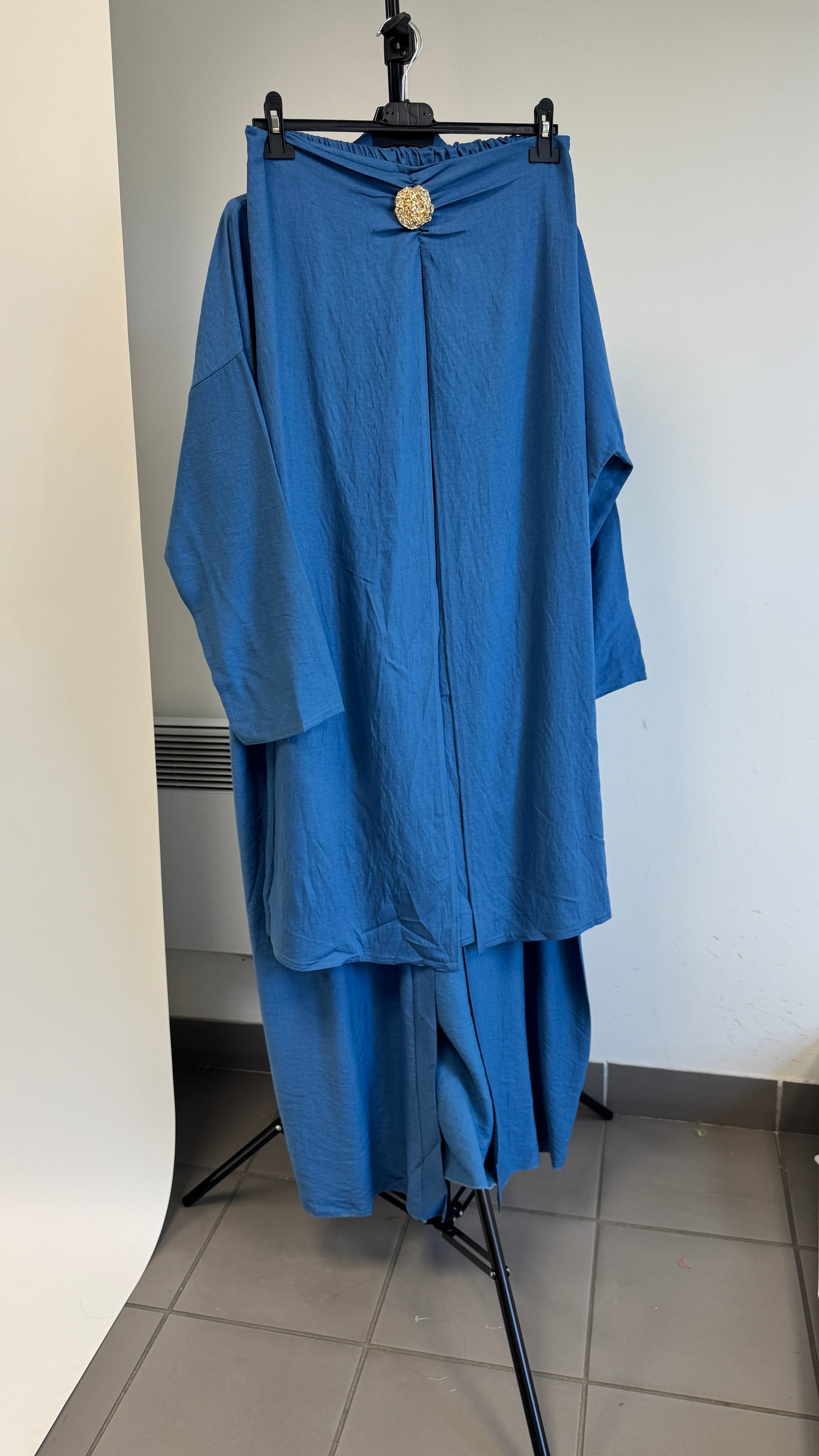 L'ensemble HAÏ, composé à 95 % de viscose et 5 % d'élasthanne, allie confort et élégance grâce à sa matière douce et légèrement extensible. Cette composition assure une excellente respirabilité tout en offrant une liberté de mouvement optimale, idéale pour un usage quotidien sophistiqué. Sa coupe étudiée met en valeur la silhouette avec finesse, faisant de cet ensemble un choix expert pour un style à la fois moderne et raffiné.